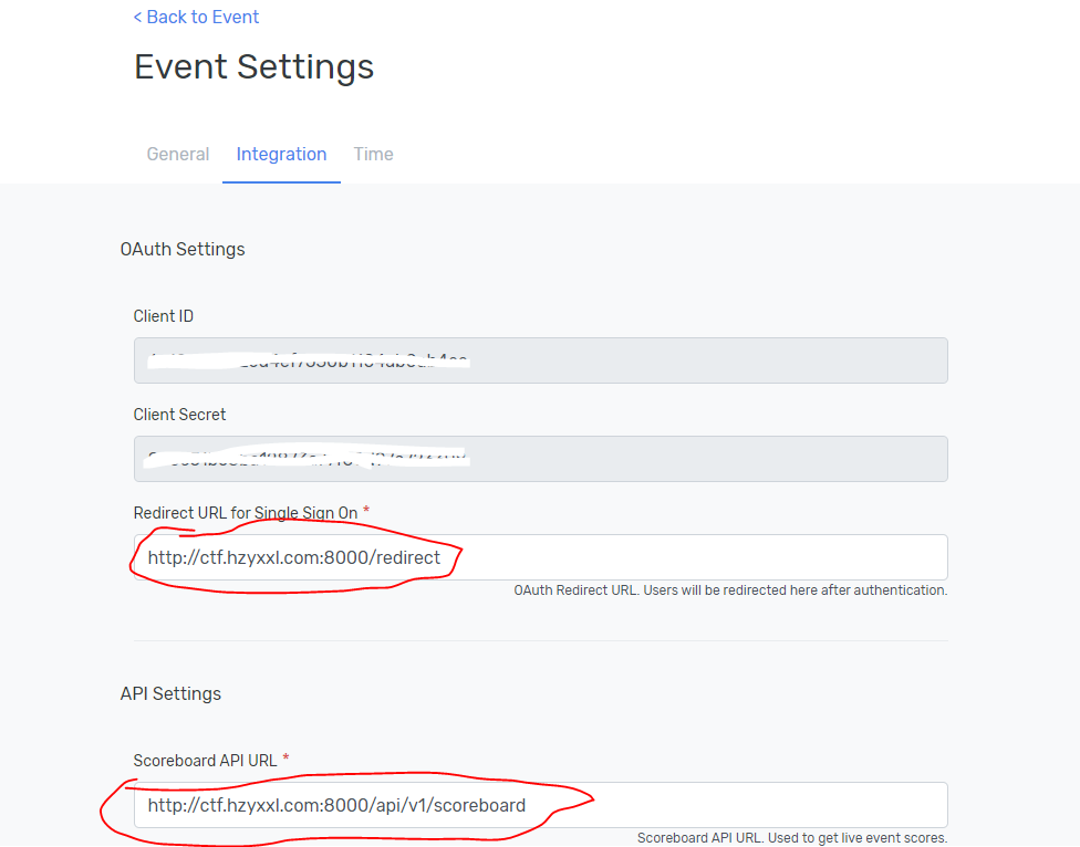 并把上面的Client ID和secret填写到ctfd的设置页面
