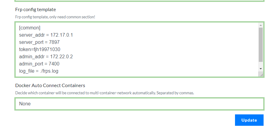 填写相关参数,注意要在template里面写上frpc.ini的内容。里面domain填写自己的