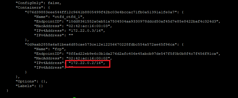 1 | docker network connect frpcadmin <ctfd容器名或者ID> |